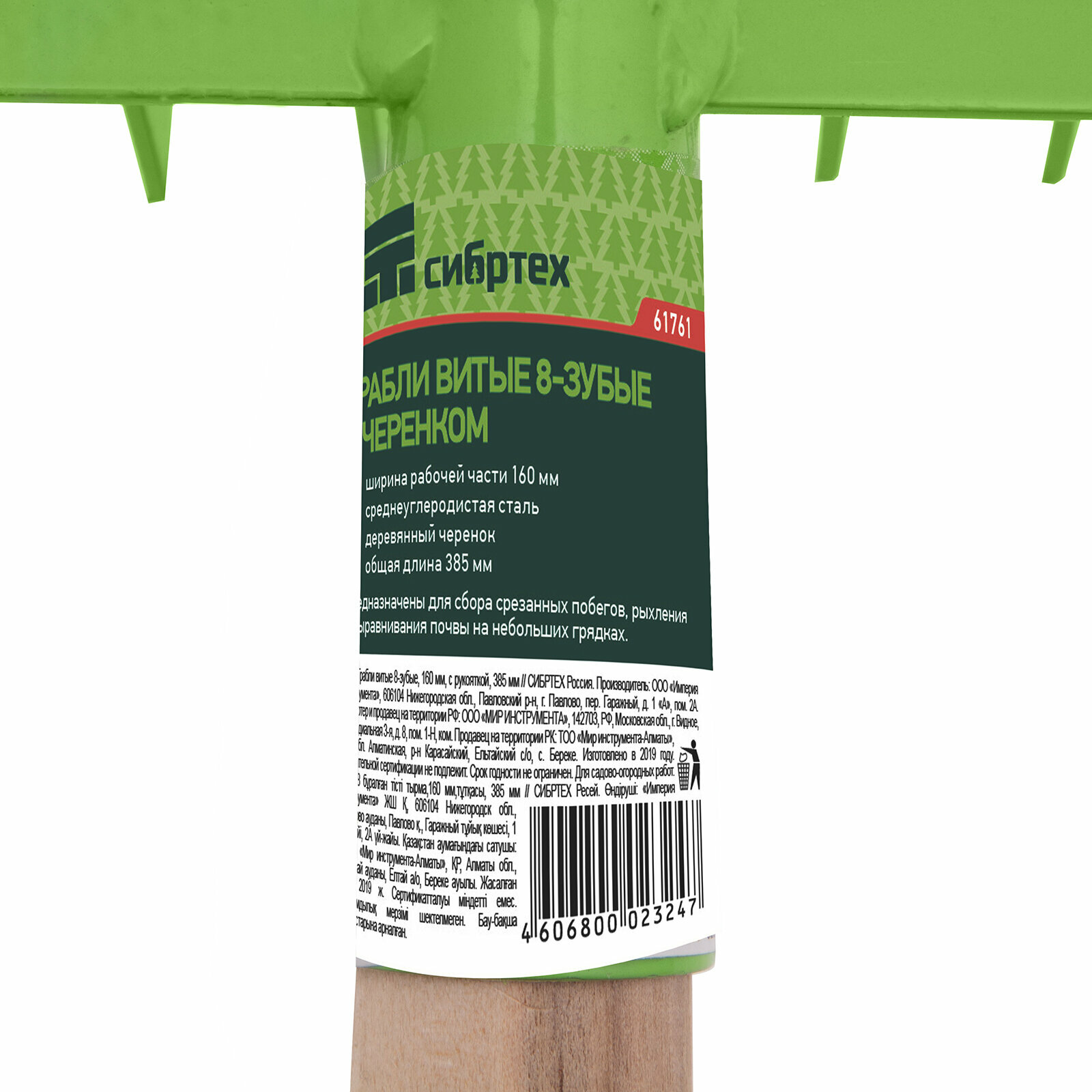 Купить Грабли витые 8-зубые Сибртех 160х390 мм, стальные, деревянная рукоятка 61761