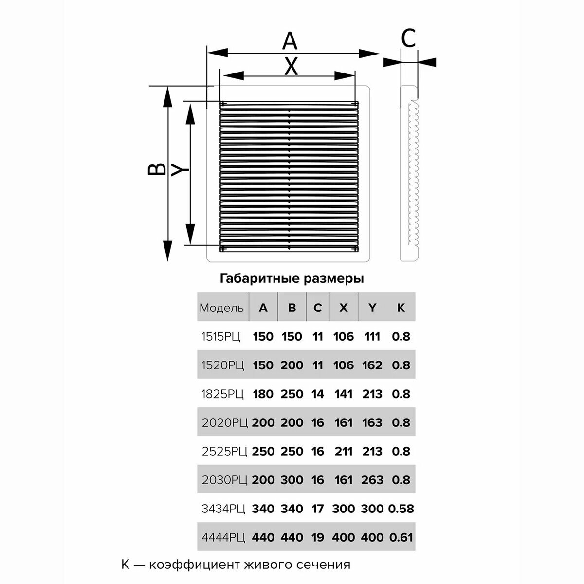 Решетка вентиляционная ERA 1520 РЦ, 150x200 мм, цилиндрическая, с сеткой, неразъемная