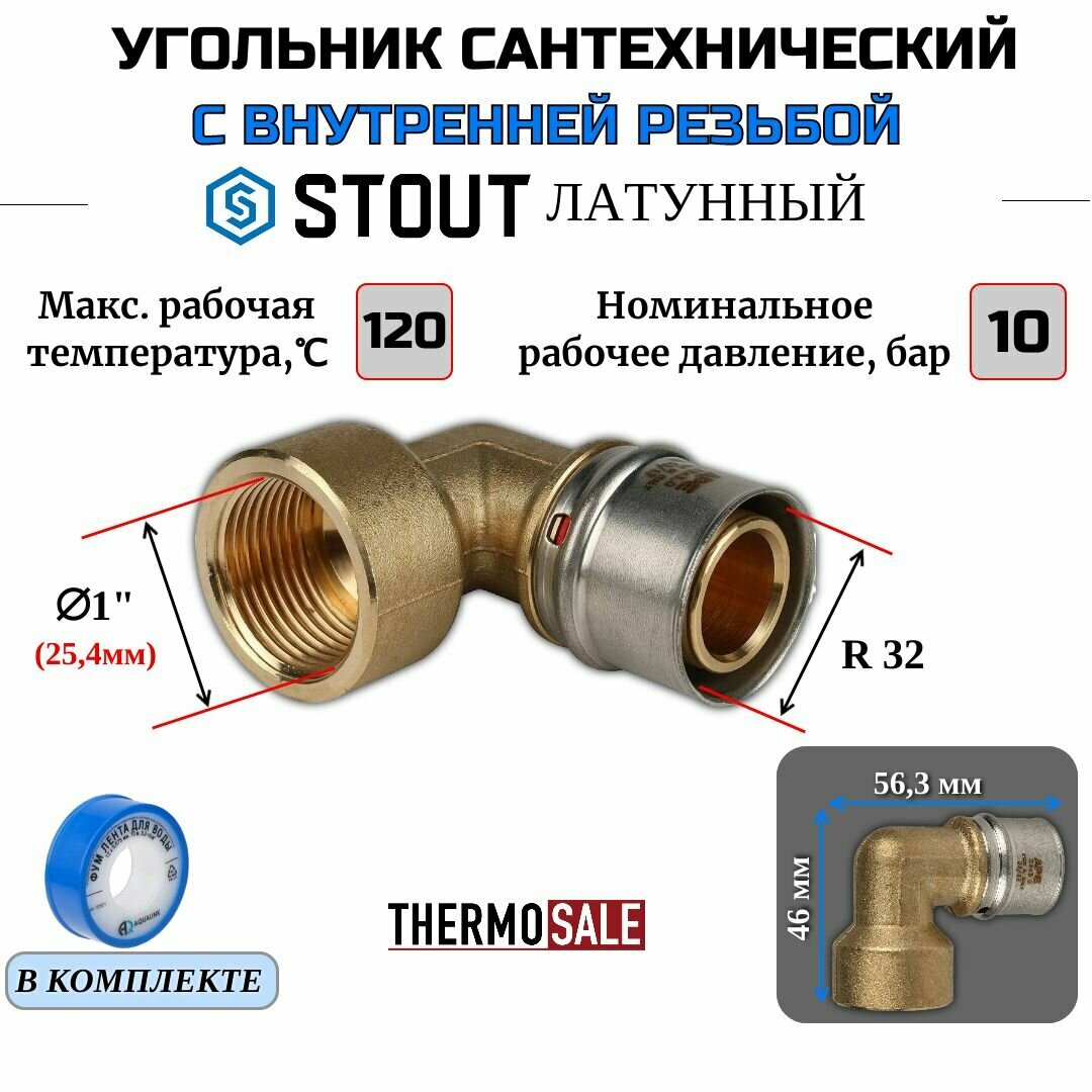 SFP-0010-000132 STOUT Угольник-переходник с внутренней резьбой 1"х32 для металлопластиковых труб прессовой
