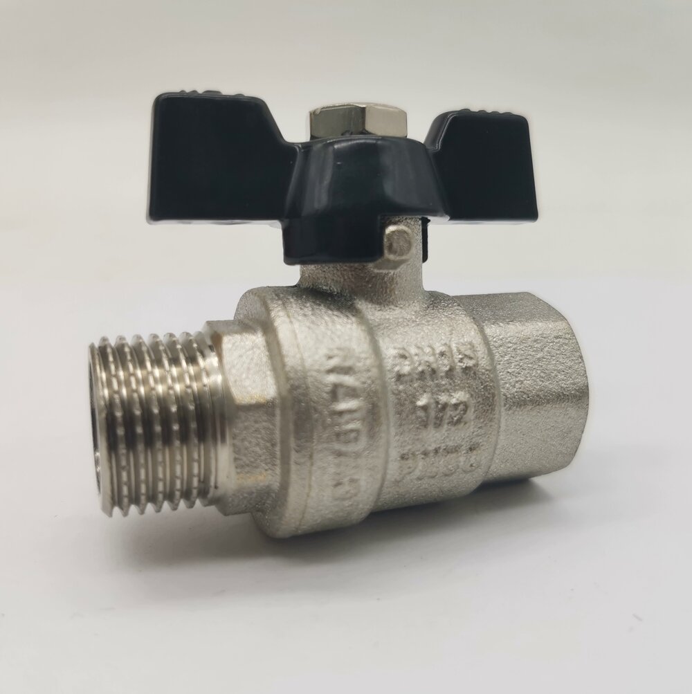 Кран шаровой латунь 1/2" внутренняя-наружная резьба, бабочка DE1215X Tim