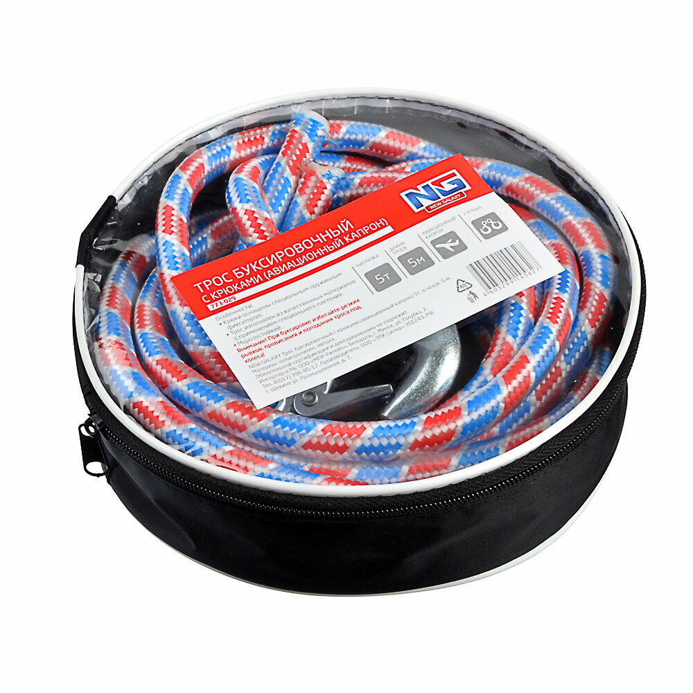 NEW GALAXY Трос буксировочный с крюками (авиационный капрон) 5т, в чехле, 5м