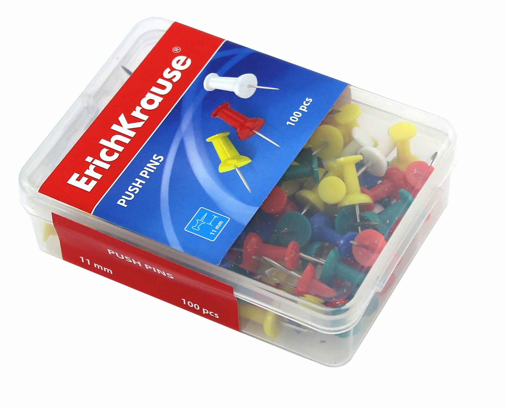 Кнопки силовые ErichKrause® цветные (пластиковая коробка 100 шт.)
