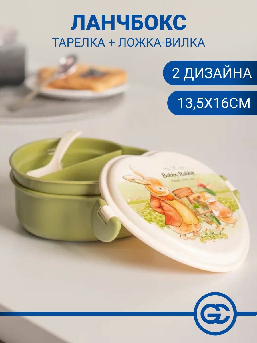 Купить Ланч-бокс в форме сердечка "Зайчата", тарелка, ложка-вилка,13,5х16 см, пластик
