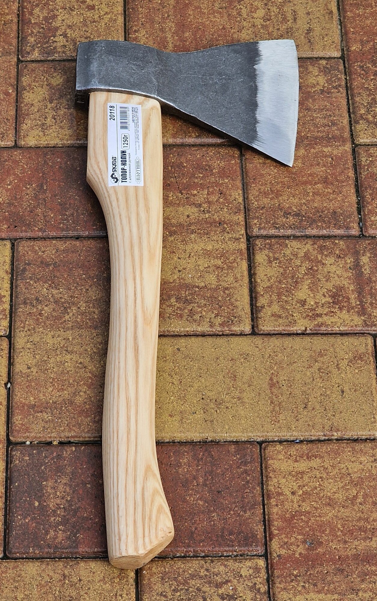 | Плюсы: | Сталь звенит, топорище отличное, сделано в Китае, но качественно |