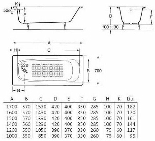 Чугунная ванна Roca Continental 170х70 21290100R без противоскользящего покрытия