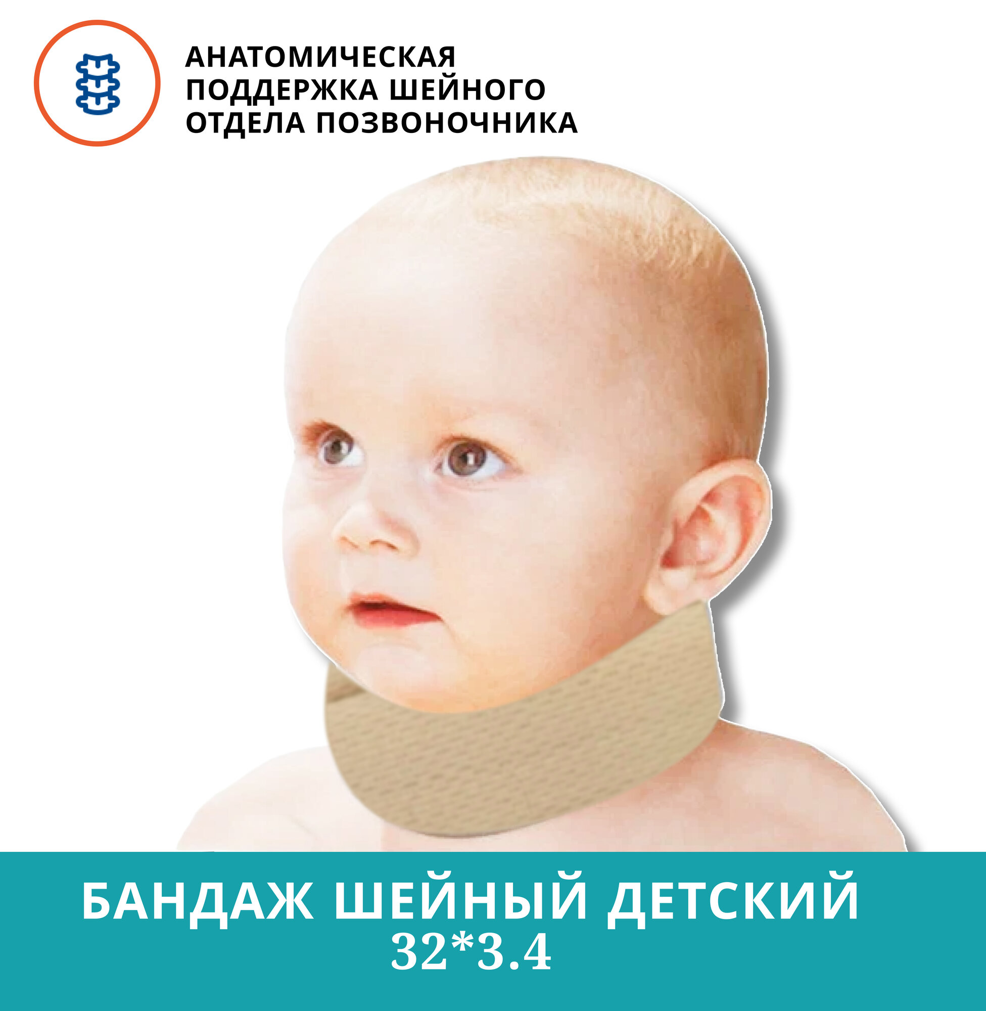ORTO Ортопедический воротник (шина) Шанца для новорожденных (при кривошее),Шейный бандаж для грудничков 32x3,4/ умеренная степень фиксации