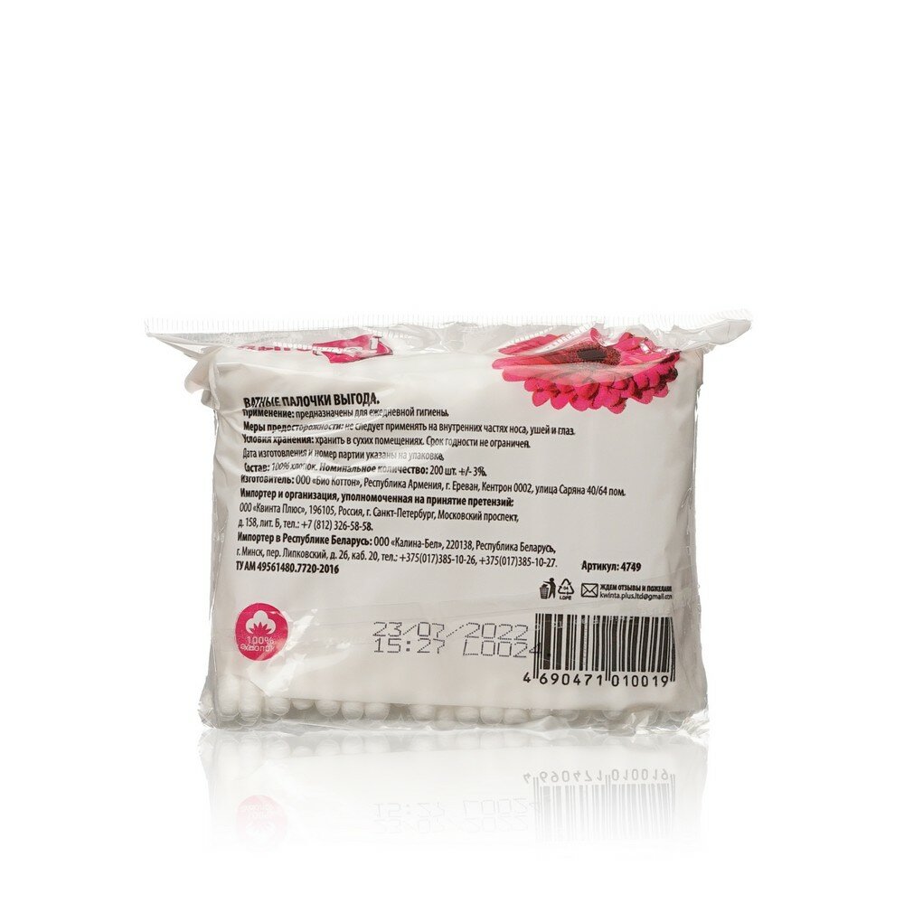 Ватные палочки Выгода пакет 200шт интересное: