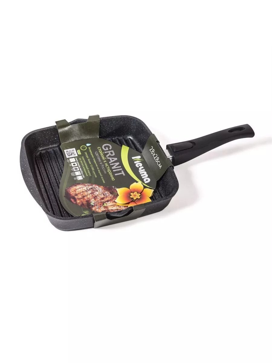 Сковорода гриль Мечта квадратная 28х28 см Гранит с антипригарным покрытием со съемной ручкой, НЕ индукционная
