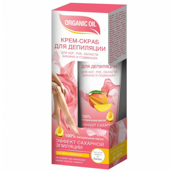 Фитокосметик Крем-скраб Organic Oil для депиляции для всех типов кожи, 100 мл