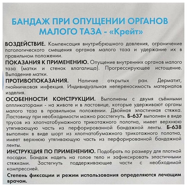 Бандаж при опущении матки Крейт Б-637 №12 (обхват бедер 132-136 см) опущение ОМТ: стенок влагалища, шейки матки, выпадении матки