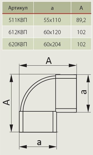Отвод ERA 612КВП, плоский, вертикальный, 60 х 120 мм