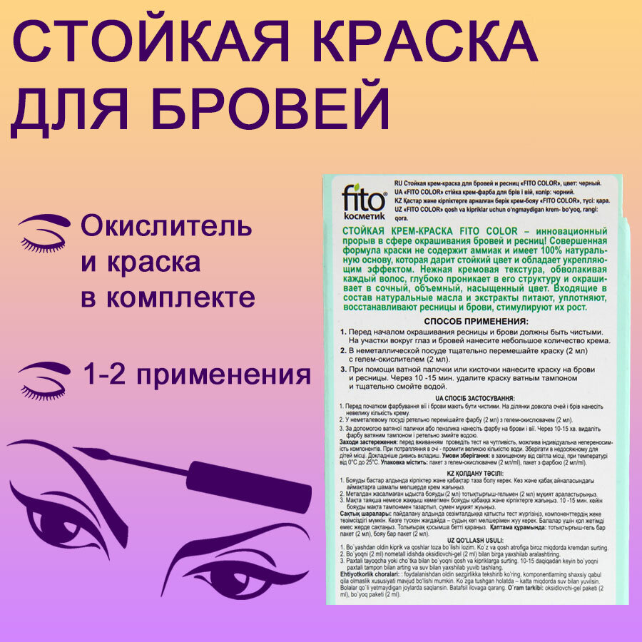 Фитокосметик Стойкая крем-краска для бровей и ресниц Fitocolor, Черный(2прим)2х2 мл. (Фитокосметик)