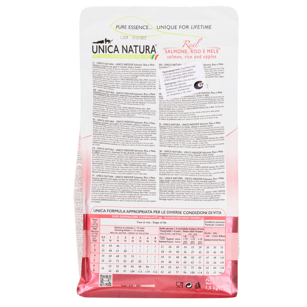 Купить UNICA Indoor сухой корм для кошек с лососем, рисом и яблоками, 1,5 кг
