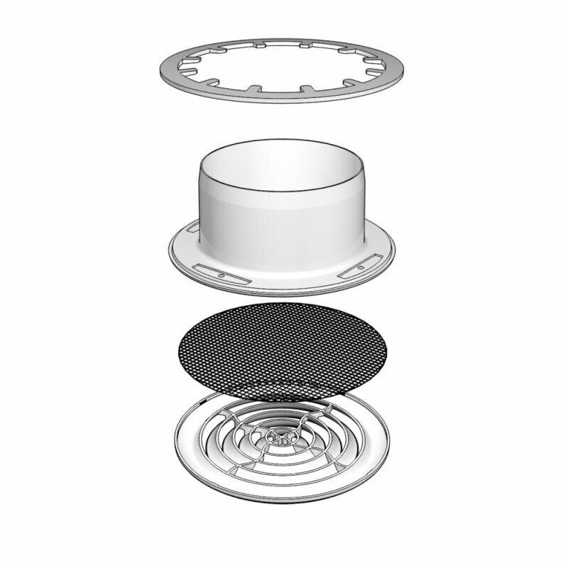 Диффузор приточно-вытяжной ERA 12,5DK 125 мм, с сеткой и стопорным кольцом, белый пластик