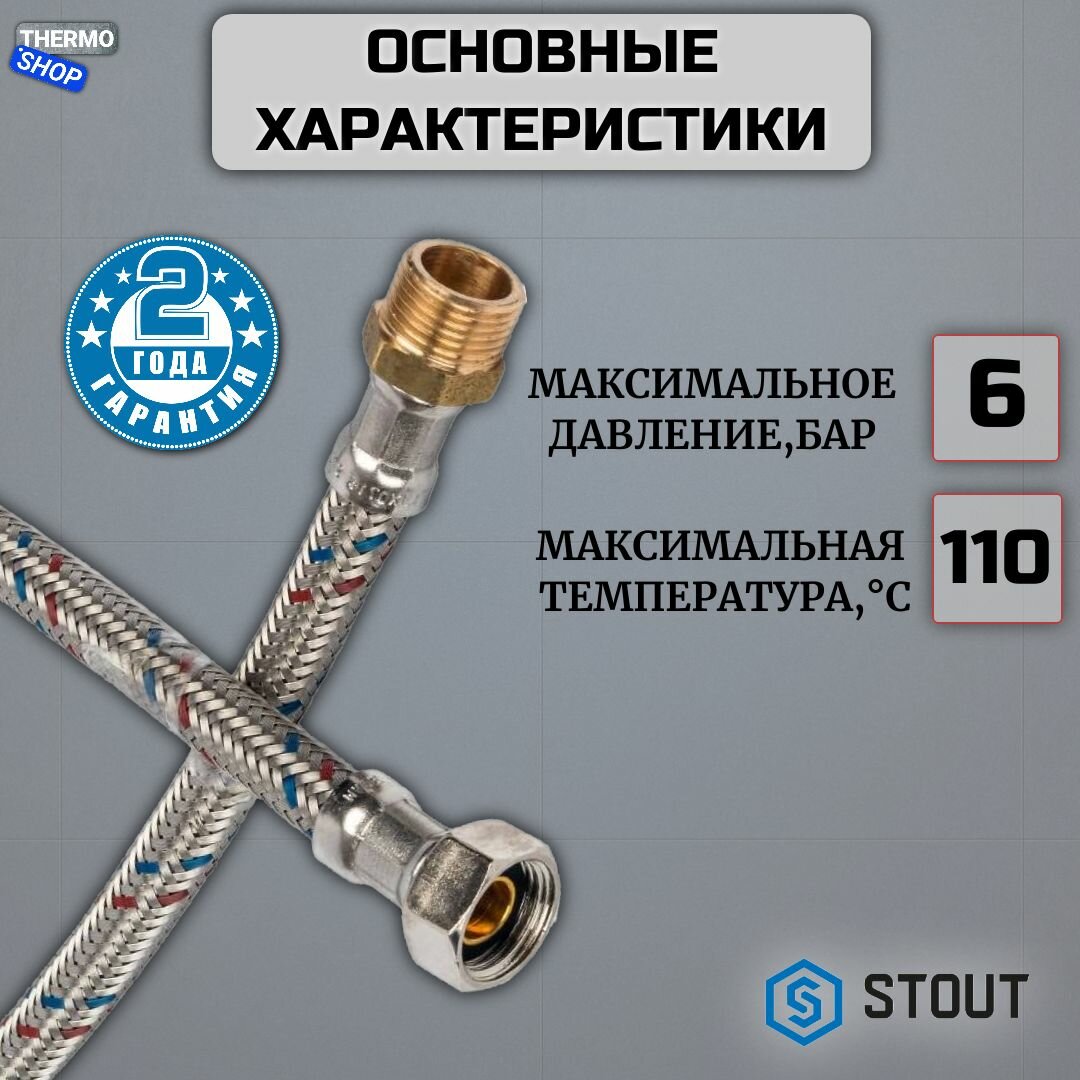 Гибкая подводка для воды с наружной и внутренней резьбой, Stout - р5924