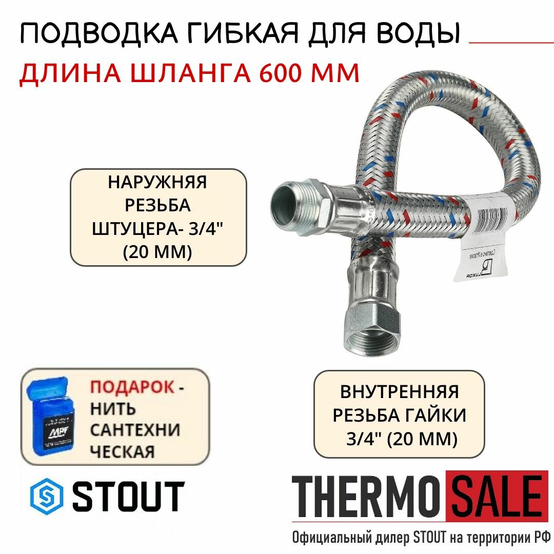 Гибкая подводка для воды Stout НР 3/4 х ВР 3/4, длина 600 мм