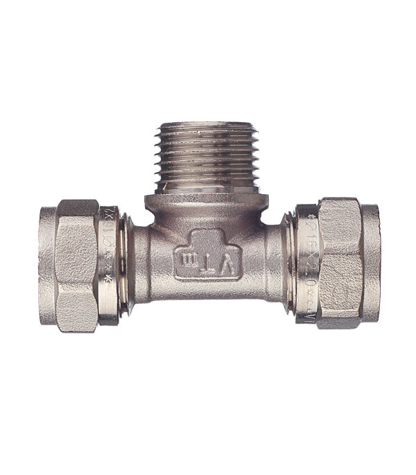 Фитинг обжимной - тройник МП с переходом на нар.резьбу 16 мм х 1/2" VTm.333.N.160416
