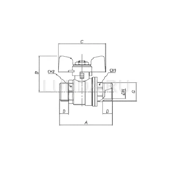 Кран шаровой латунный LD Pride 47.15. В-ГШ. Б исп.2 Ду 15 Ру 40 бабочка