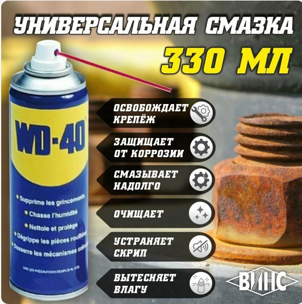Ниже Вы можете прочитать отзывы на Универсальная смазка WD-40, 330 мл, ознакомится с подробными характеристиками, посмотреть интересные обзоры и фотографии на Универсальная смазка WD-40, 330 мл.