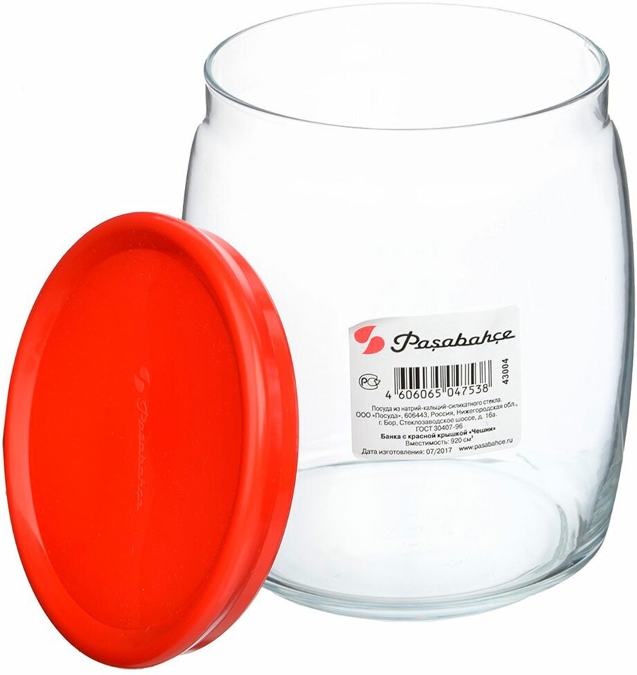 Банка чешни 920 мл с красной пласт.крышкой 43004B