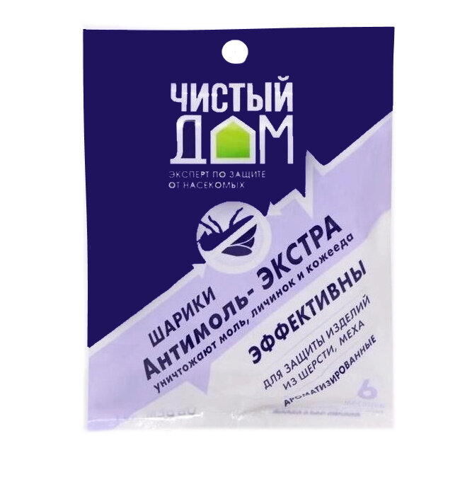 Шарики от моли "Чистый дом" Антимоль Экстра, пакет, 40 г(2 шт.)