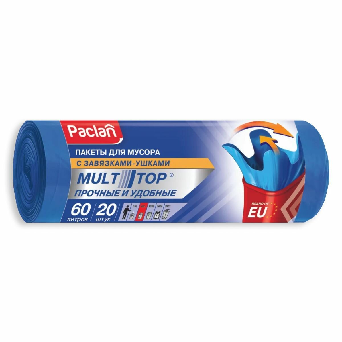 Мешки для мусора PACLAN "MULTITOP" 60л, 7 мкм, 20 шт/рул, синий