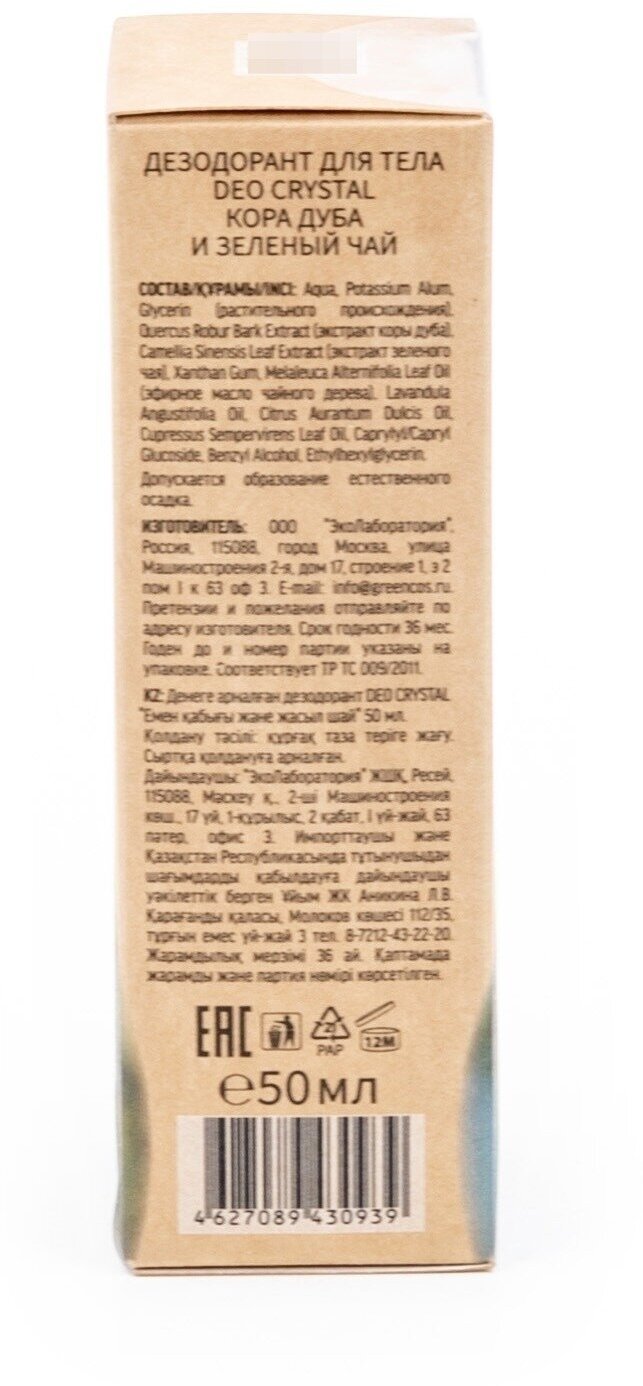 Дезодорант для тела Deo Crystal "Кора дуба и зелёный чай", 50 мл