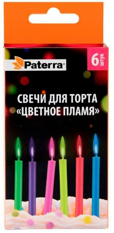 Свечи для торта цветное пламя, PATERRA, 6шт. в упаковке (401-520)