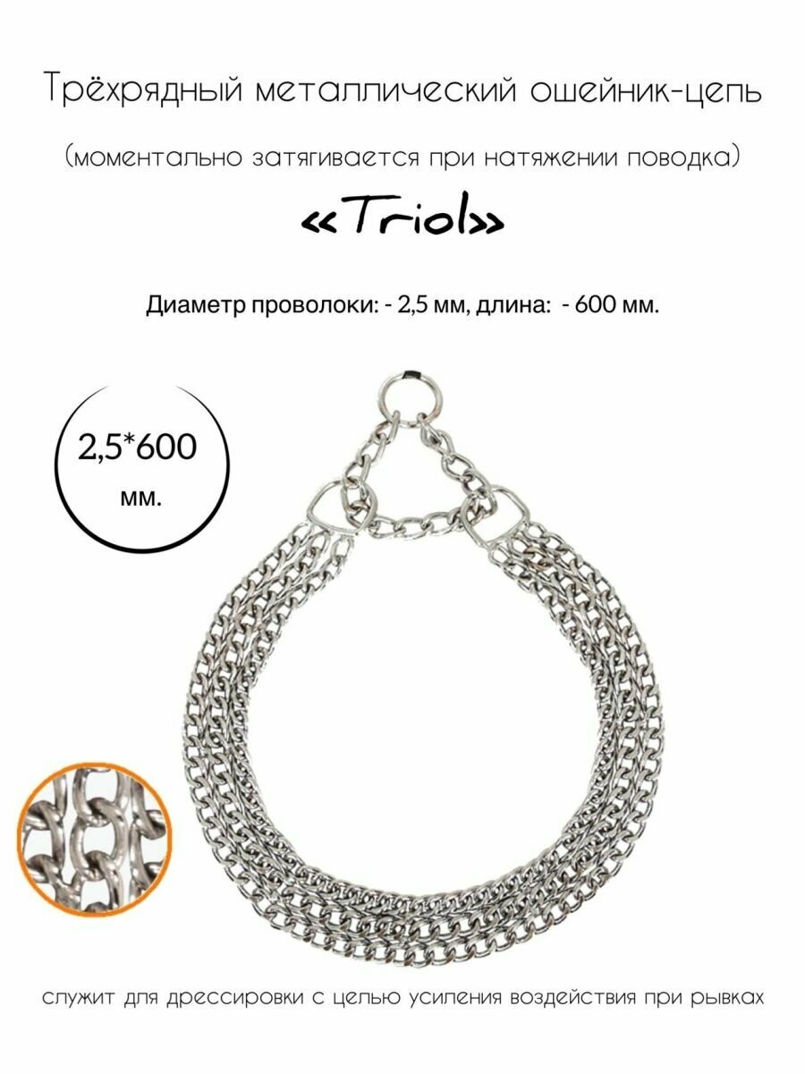Цепь - удавка Триол ошейник трехрядная 2,5x600мм сталь