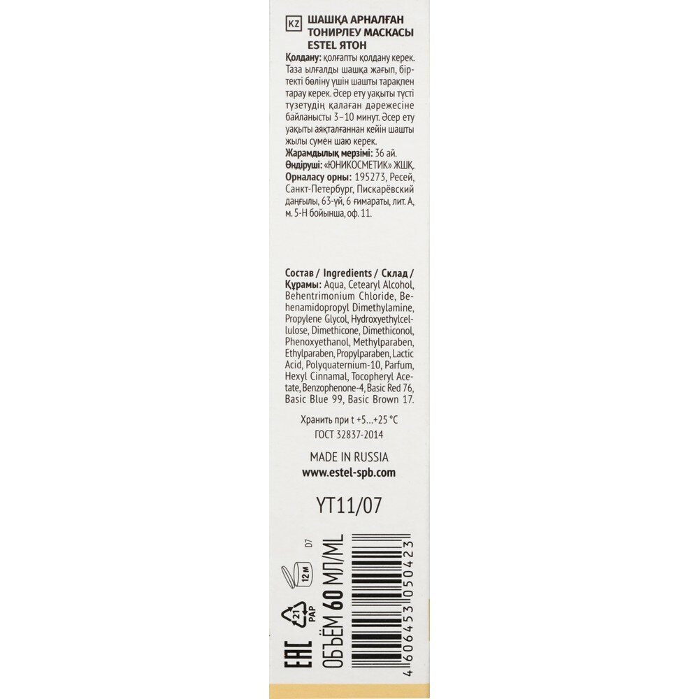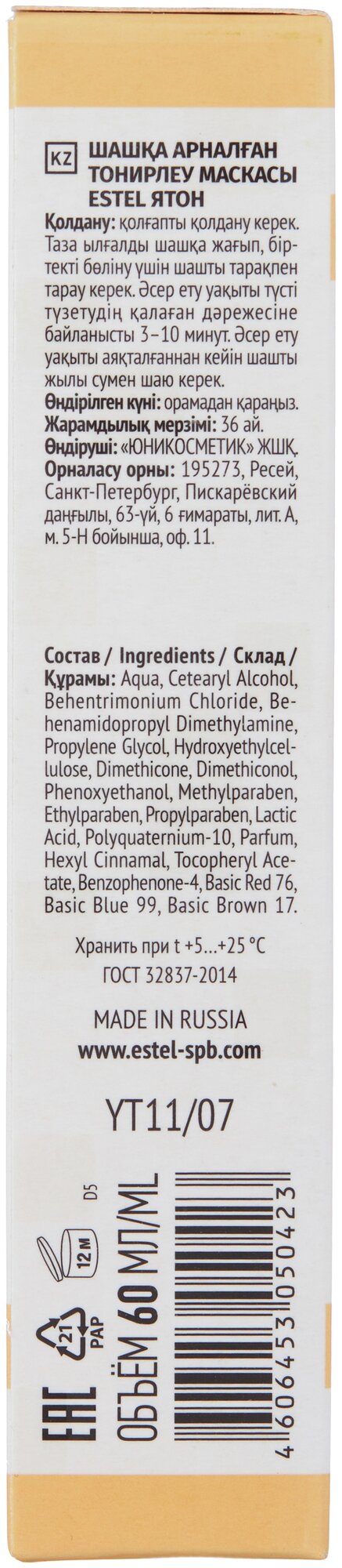 ESTEL Я Тон Маска для волос тонирующая, оттенок 11/07 Золотистый, 75 г, 60 мл, туба