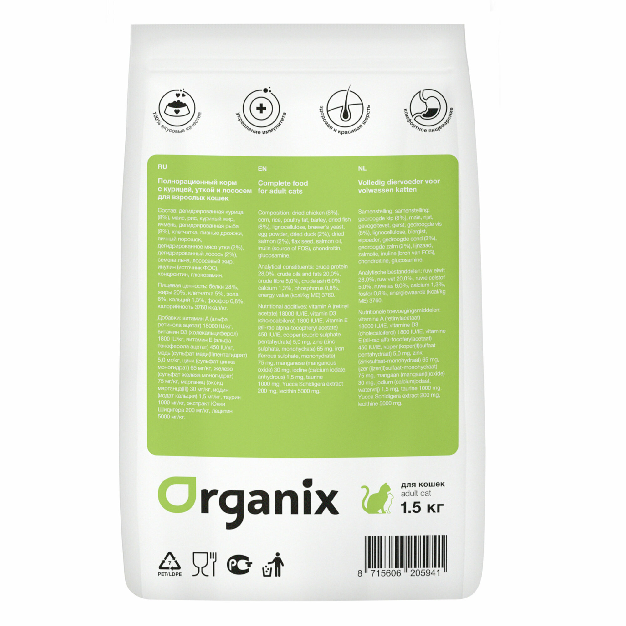 Корм сухой Organix для кошек, курица, утка и лосось, 1.5 кг