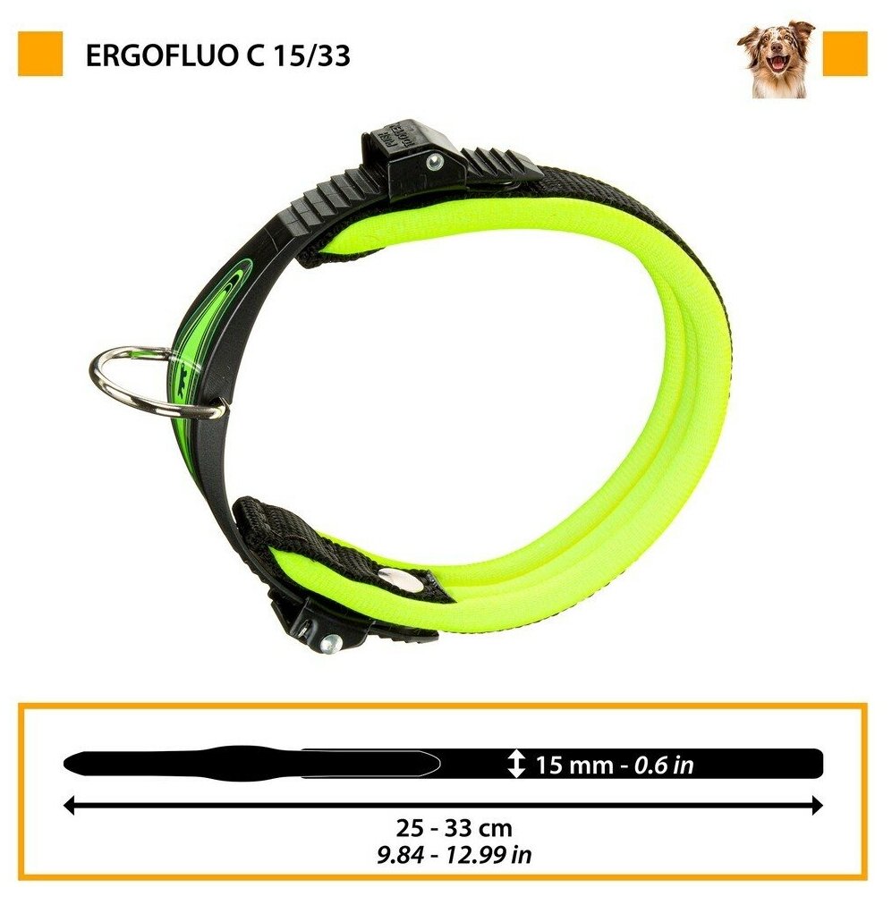 Для ежедневного использования ошейник Ferplast Ergocomfort Fluo (C15/33), обхват шеи 25-33 см, оранжевый