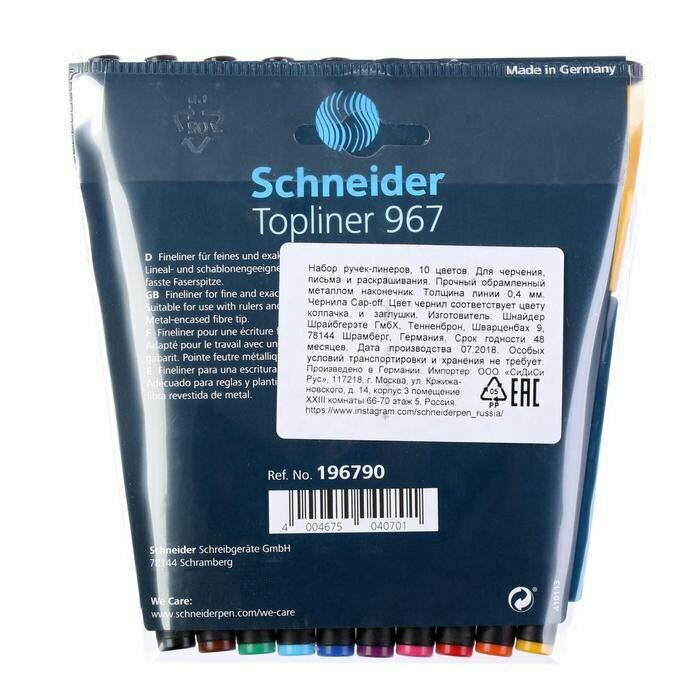 Ниже Вы можете прочитать отзывы на Набор капиллярных ручек Schneider "Topliner 967", 10 цветов, 0.4мм, ознакомится с подробными характеристиками, посмотреть интересные обзоры и фотографии на Набор капиллярных ручек Schneider "Topliner 967", 10 цветов, 0.4мм.