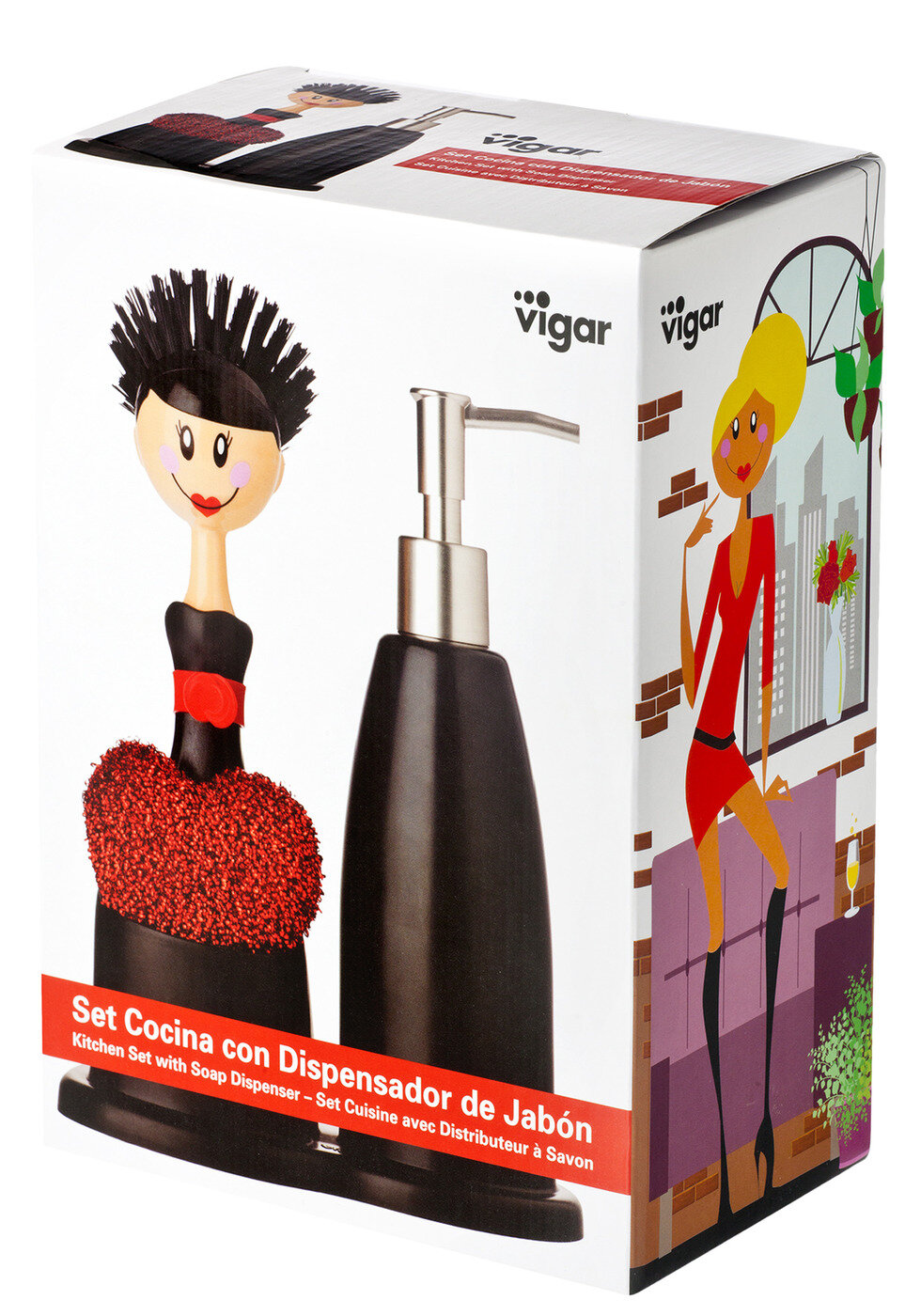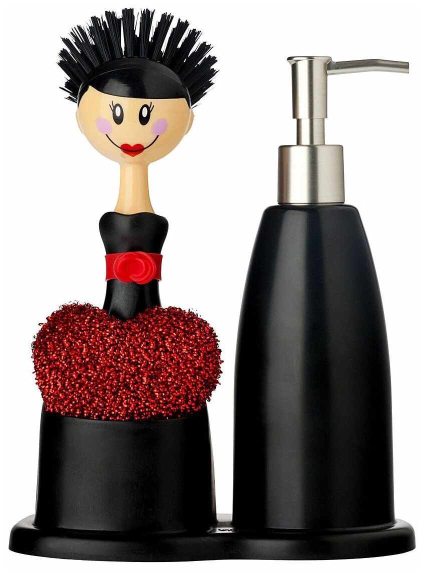 Набор для мытья посуды Vigar Dolls (щетка, губка, дозатор на подставке) интересное: