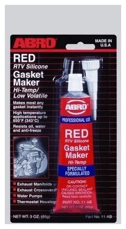 ABRO 11-AB Герметик 85гр - прокладочный красный силиконов. на уксусной основе для клапанных крышек, масл. насосов, водяных помп, крышек КПП, дифференциалов и др., до 343С