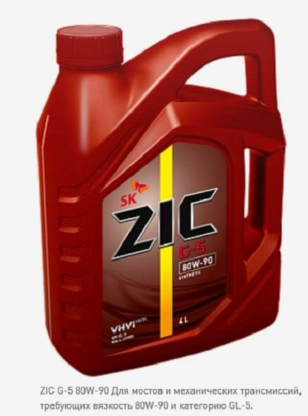 Масло трансмиссионное 80w90 zic 4л синтетика g-5 для мкпп gl-5
