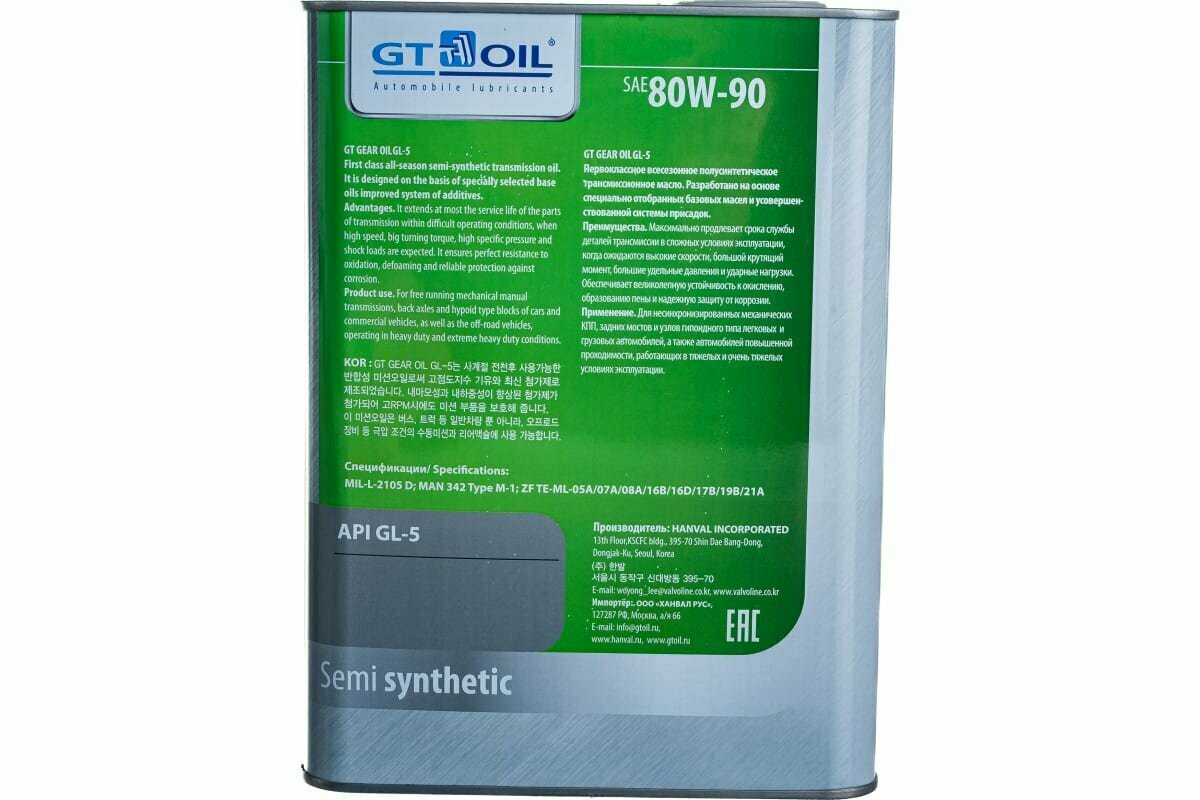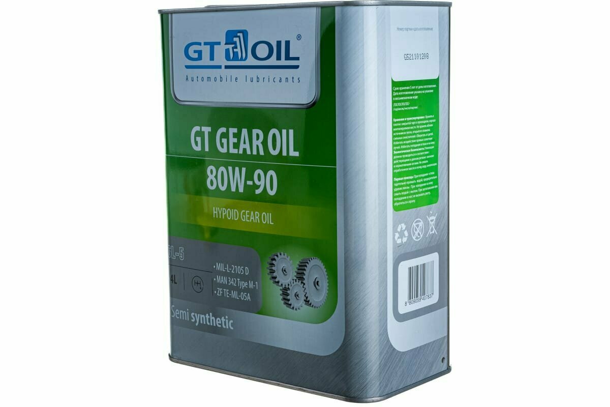 Купить Масло трансмиссионное полусинтетическое GT Gear Oil, SAE 80W-90, API GL-5, 4 л GT OIL 8809059407837 | цена за 1 шт