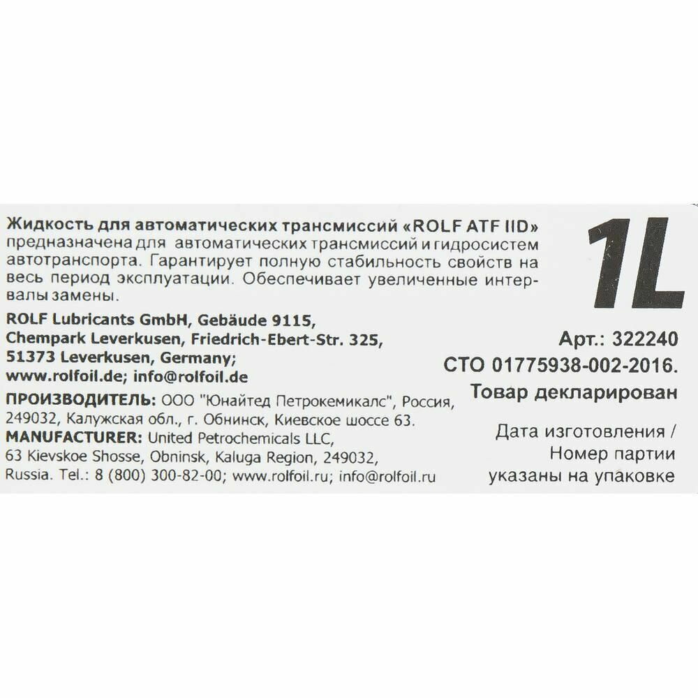 Масло Трансмиссионное Rolf Atf Iid 1 Л 322240 ROLF арт. 322240