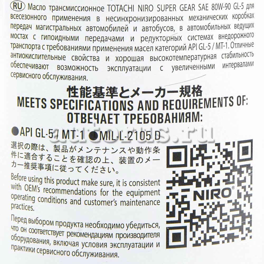 Totachi Niro Super Gear Минерал. Gl-5/Mt-1 80w-90 1л => Hd Euro Super Gear Sae 80w-90 Api Gl-5/Mt-1 1л TOTACHI ар...