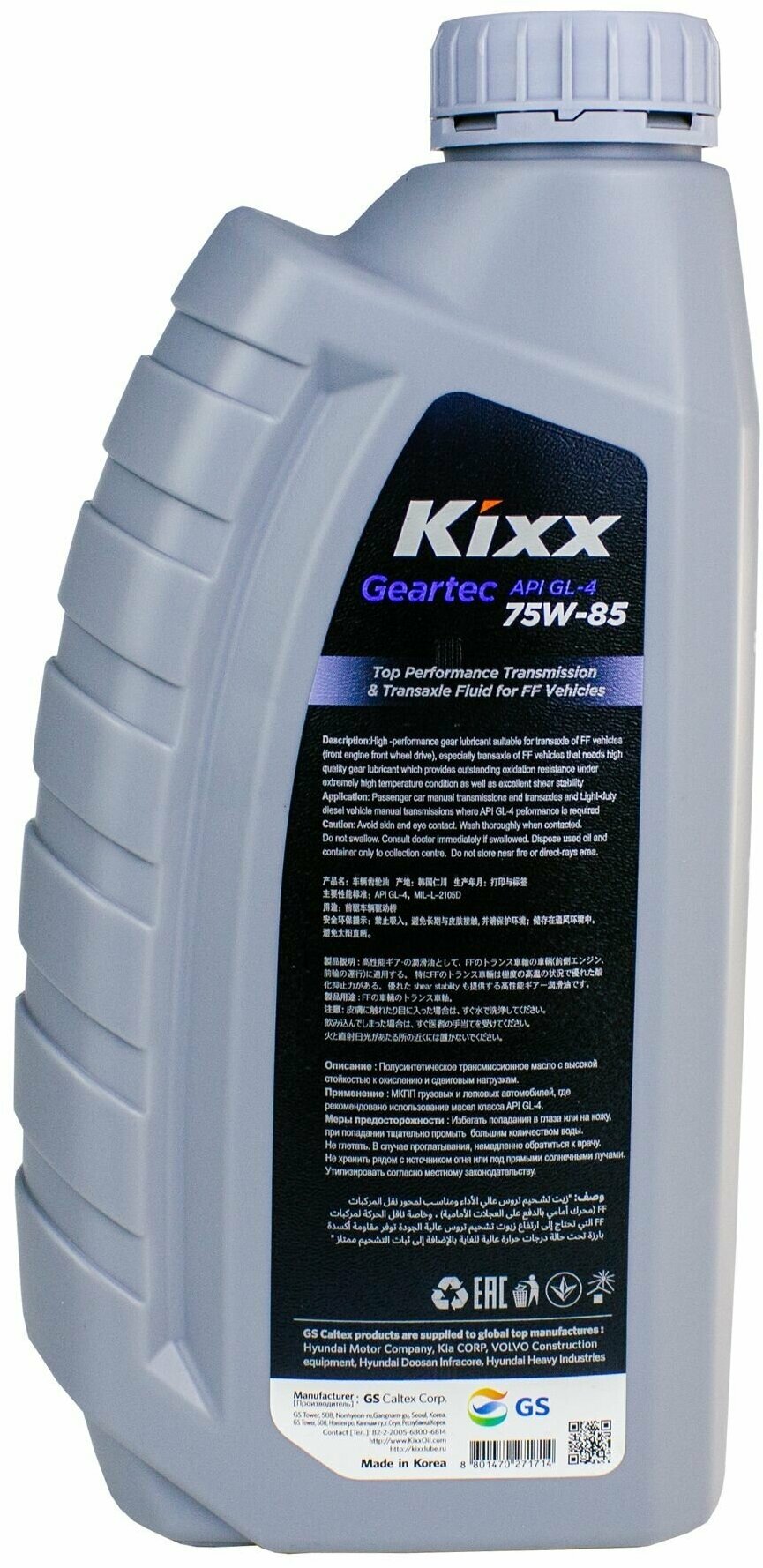 KIXX L2717AL1E1 Масо трансмиссионное KIXX GEARTEC FF GL-4 75W85 поусинтетическое 1 L2717AL1E1