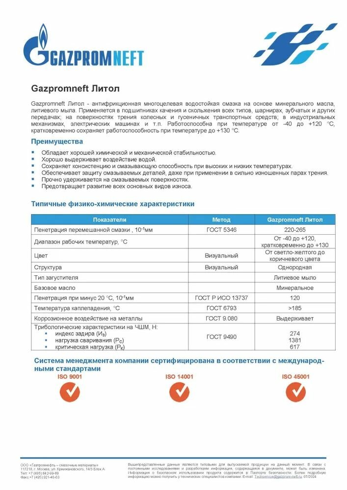 Смазка GAZPROMNEFT ЛИТОЛ-24