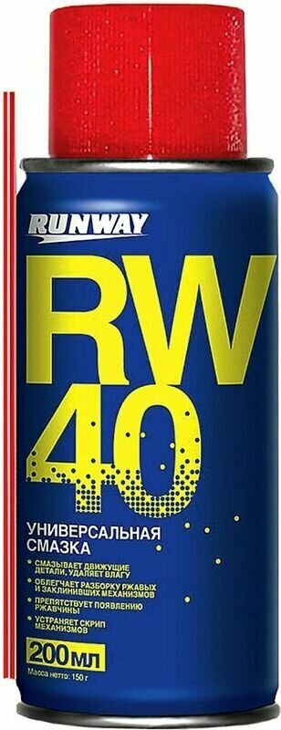 Смазка универсальная RW-40 (аналог WD-40) 200 мл, с трубочкой, RUNWAY RW6096
