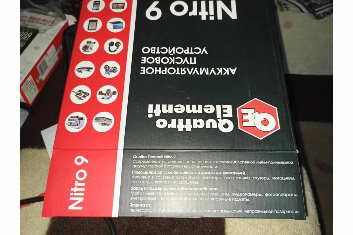 Пусковое устройство для автомобиля QUATTRO ELEMENTI Nitro 9 (12В, 9000 мАч, 450 А, USB, LCD - фонарь)
