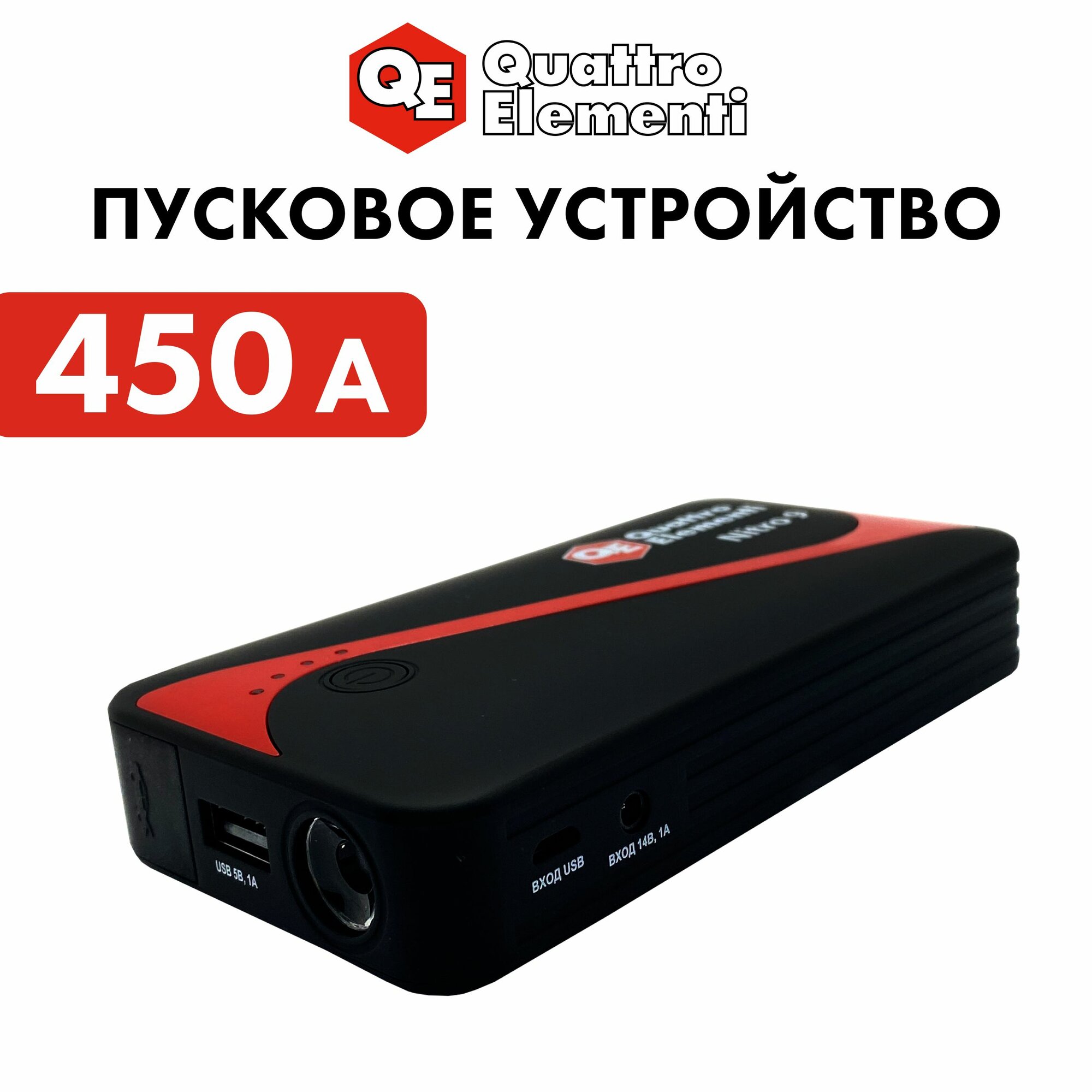 Пусковое устройство QUATTRO ELEMENTI Nitro 9 (12В, 9000 мАч, 450 А, USB, LCD - фонарь)