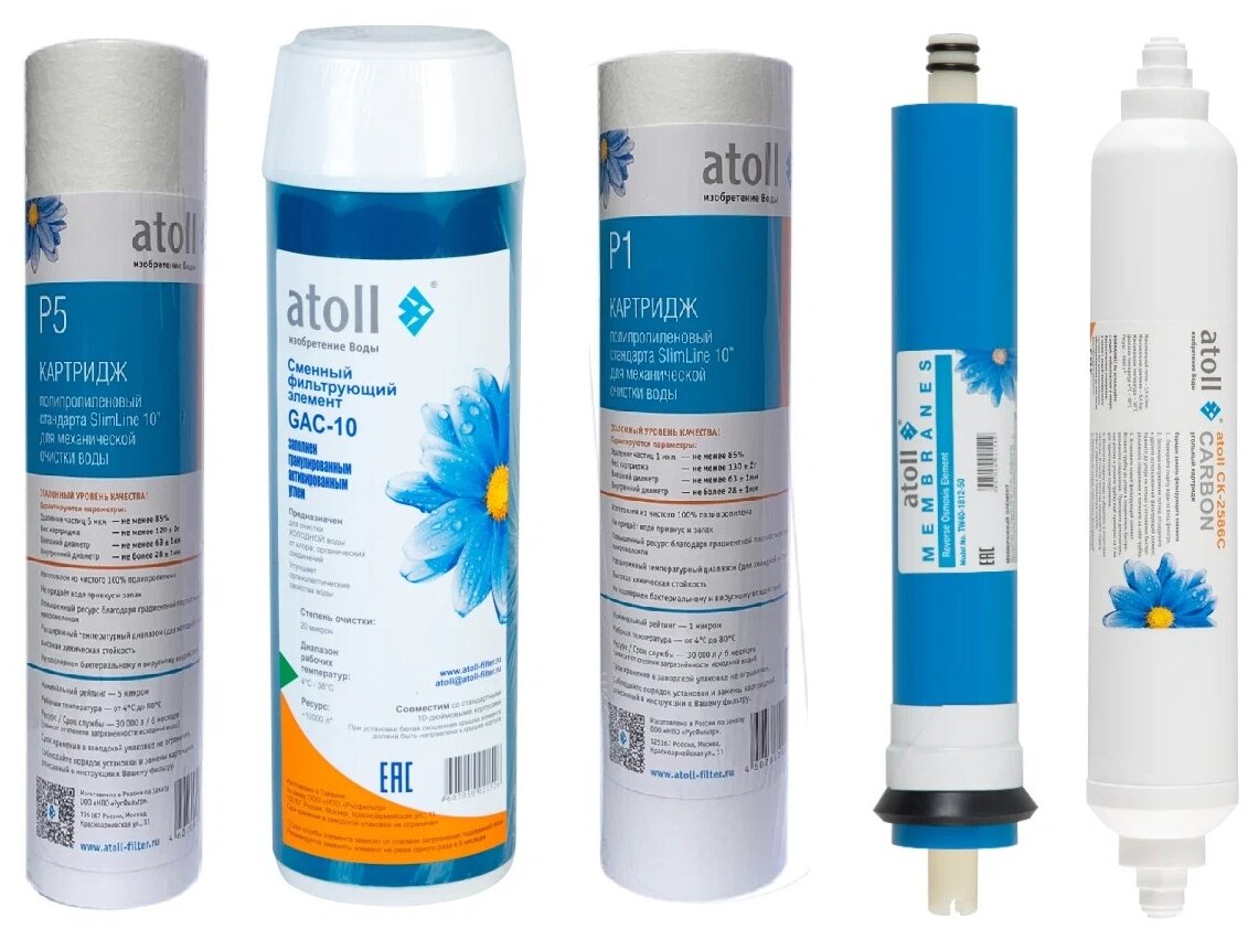 Все 5 картриджей Atoll, Pentek`a в комплекте нет. |