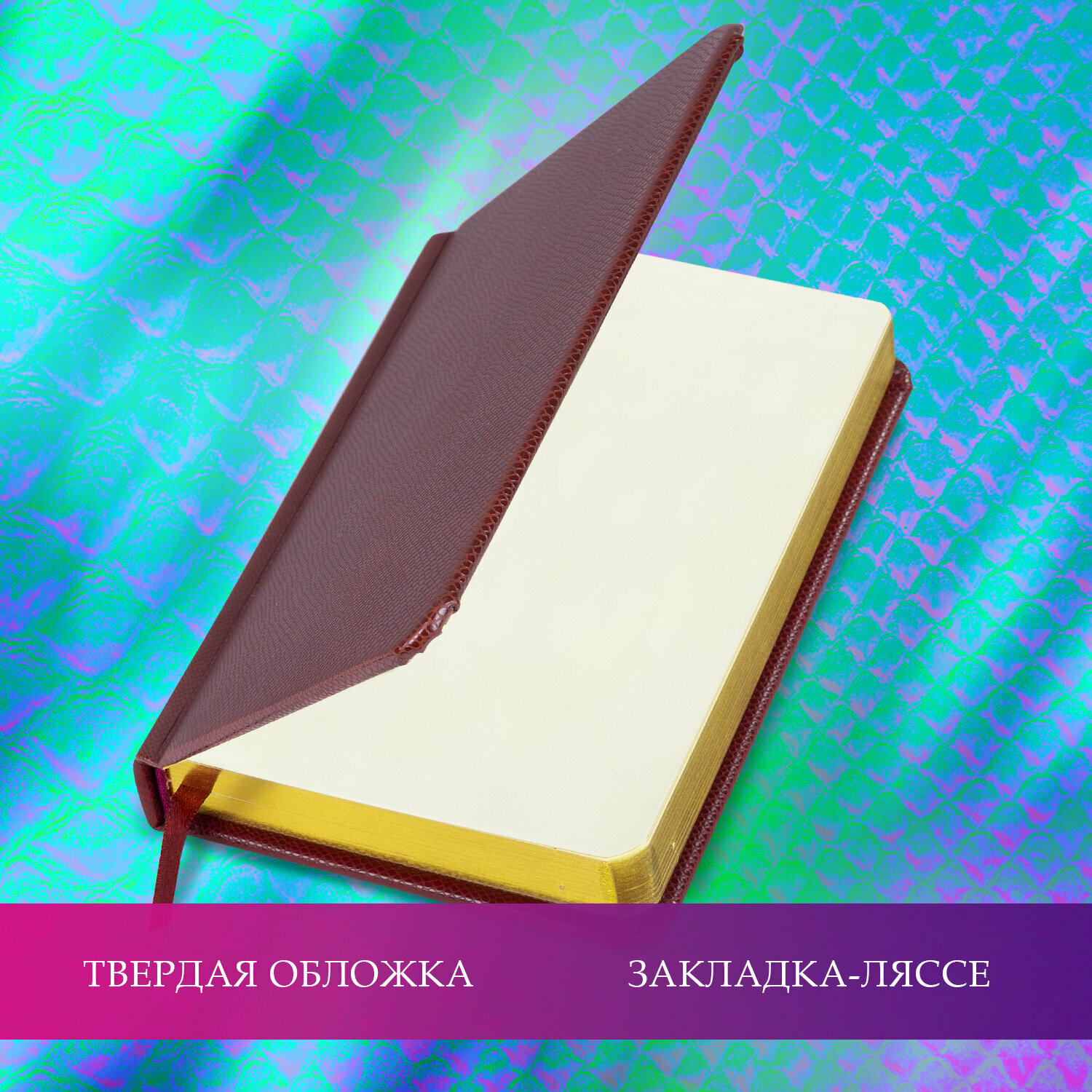 Ежедневник-планер (планинг) / записная книжка / блокнот недатированный малого формата А6 100х150мм 160 листов, Brauberg Iguana, под кожу рептилий, золотой срез, т-коричневый