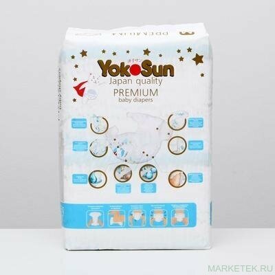 Подгузники YokoSun Premium M (5-10 кг) 62 шт