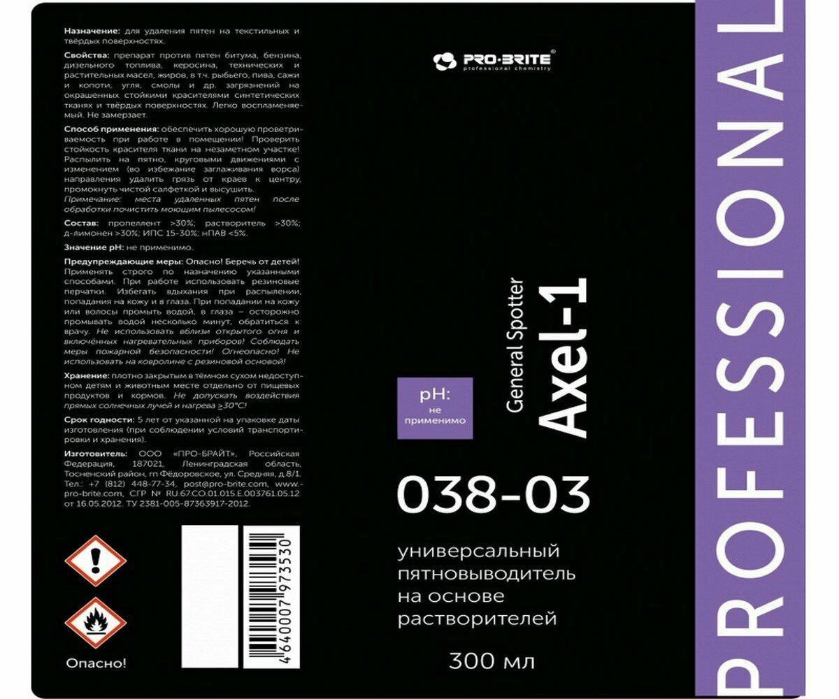 Профхим спец пятновывод-растворит Pro-Brite/AXEL-1General Spotter, 0,3л