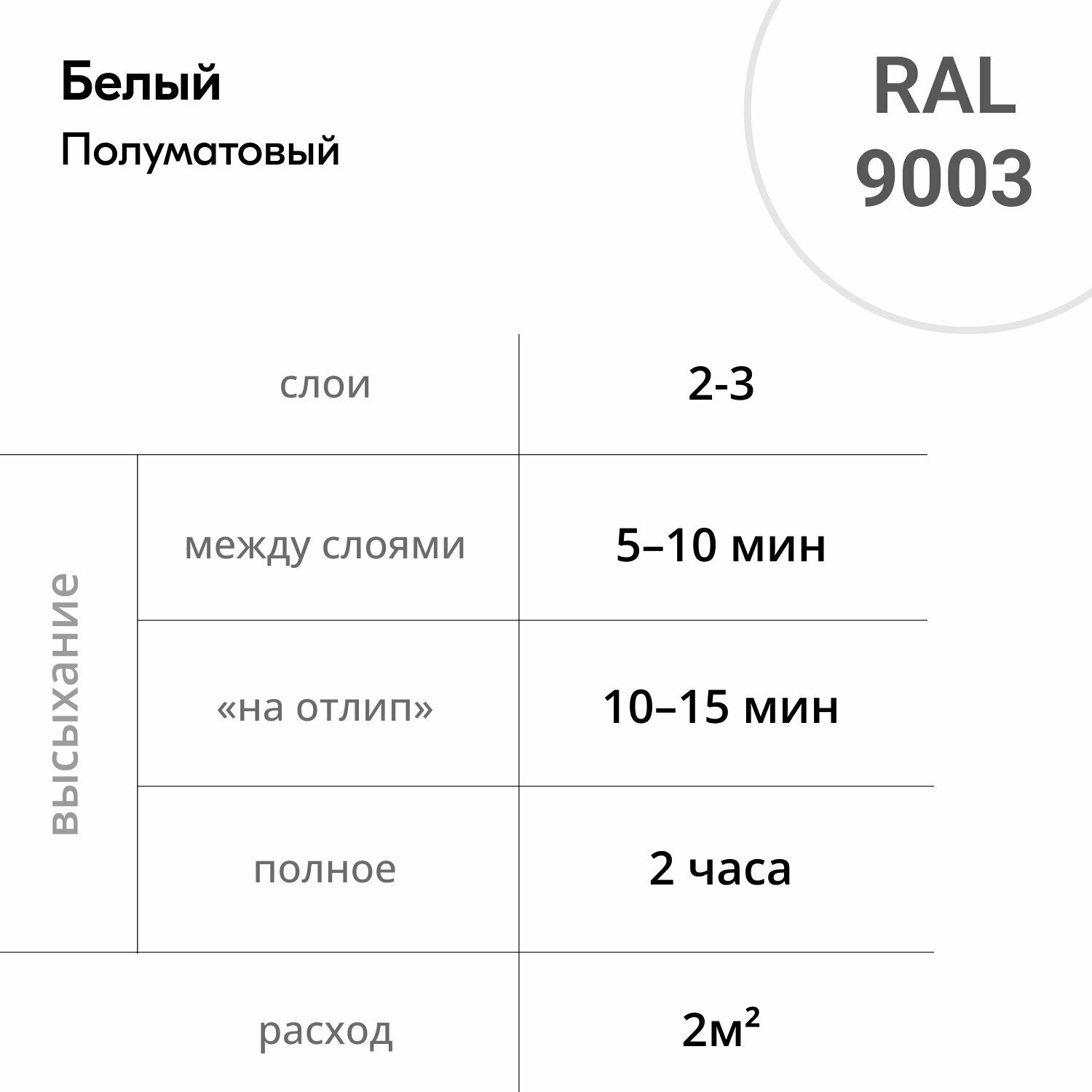 | Время высыхания | 2 часов |
