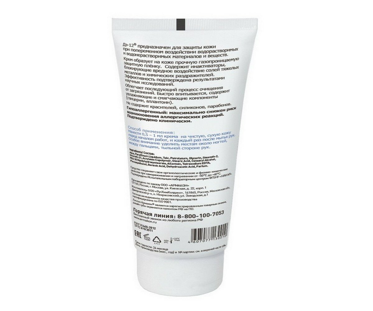 Универсальный защитный крем от водорастворимых и водонерастворимых веществ армакон ДЭ-12